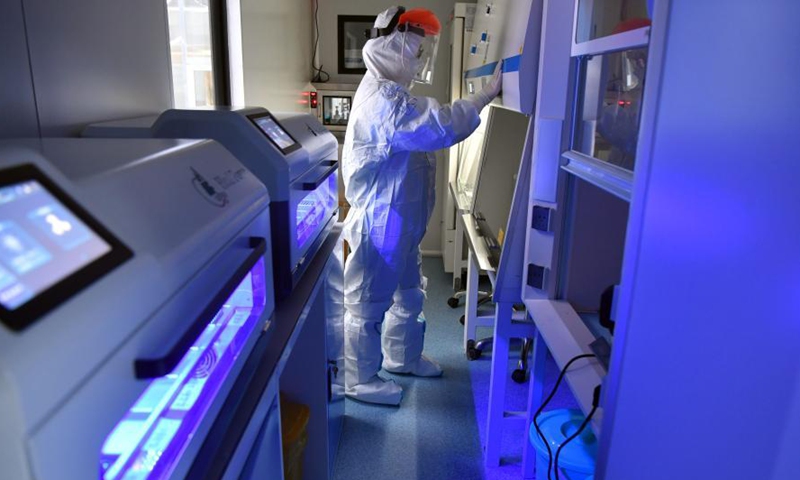 A medical staff prepares for the nucleic acid testing at a laboratory of a supervised warehouse for imported cold chain food in Zhengzhou, central China's Henan Province, Jan. 22, 2021. Two supervised warehouses for imported cold chain food have been put into use in Zhengzhou on Jan. 20. All of the imported cold chain food entering Zhengzhou would be tested and disinfected here.Photo:Xinhua