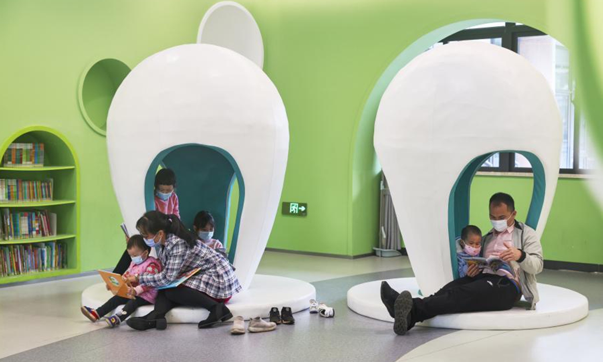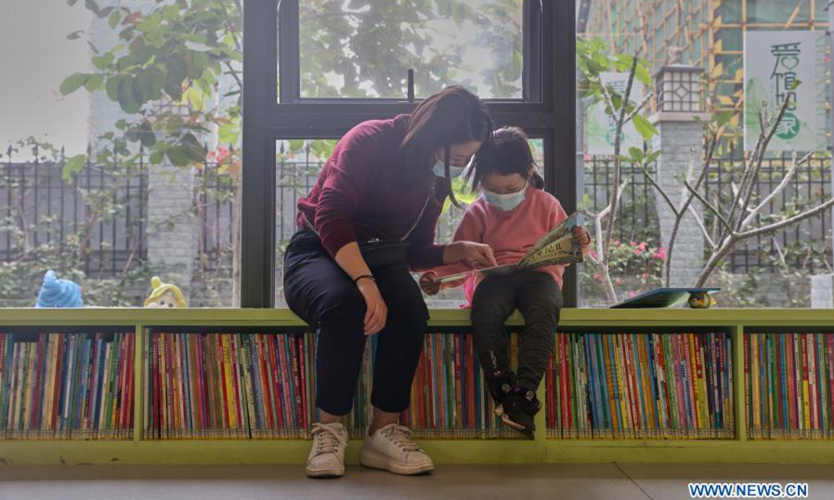 A woman reads a book with her child at the Longhua Cultural Museum in Haikou, capital city of south China's Hainan Province, Jan. 24, 2021. Museums in Haikou became attractive to children during their winter vacation. (Xinhua/Zhang Liyun)