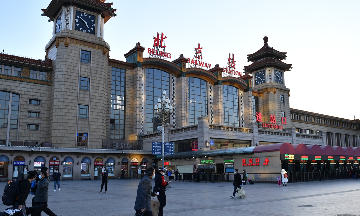 Passengers at the Beijing Railway Station on Friday. Officials said on Friday that train bookings for the Spring Festival travel peak declined by 60 percent, with the total number of passengers only reaching 296 million. Photo: cnsphoto