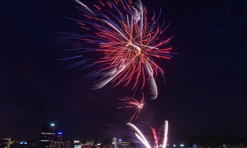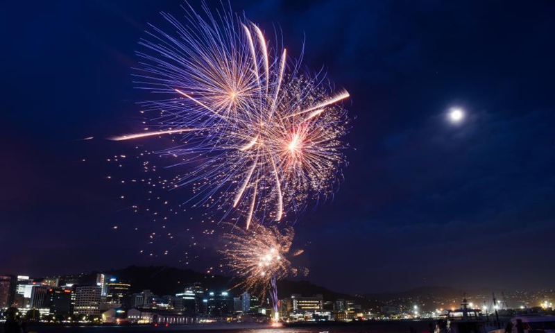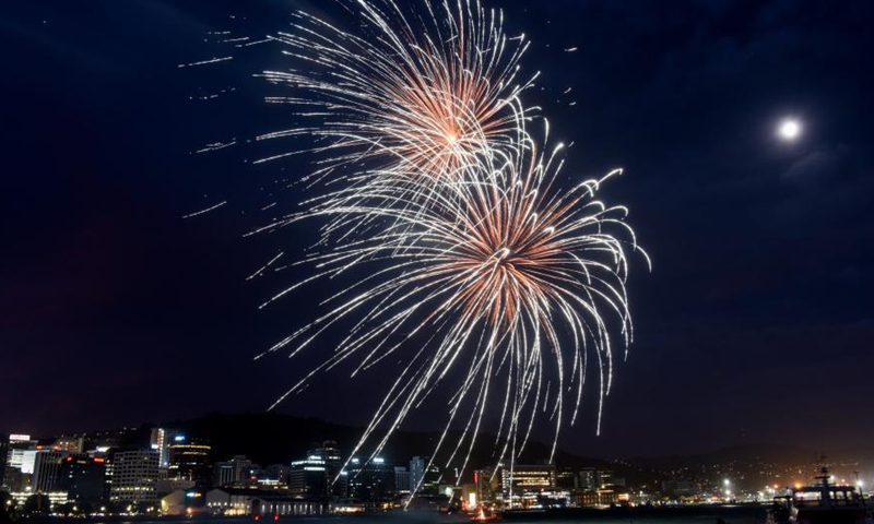 Fireworks light up the night sky of Wellington, capital of New Zealand on Jan. 24, 2021 in commemoration of the upcoming Wellington Anniversary Day on Jan. 25. Wellington Anniversary Day, a public holiday for people living in the capital city area, is celebrated on the Monday nearest to Jan. 22 every year. The holiday commemorates the arrival of the first settler ship to New Zealand on Jan. 22, 1840. (Xinhua/Guo Lei)