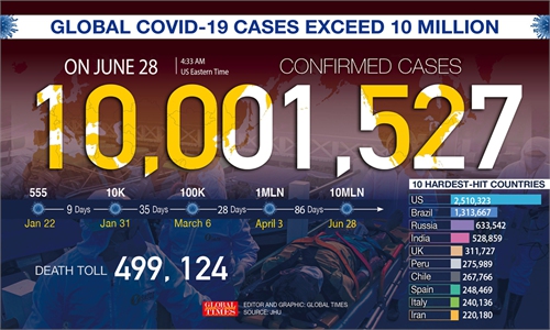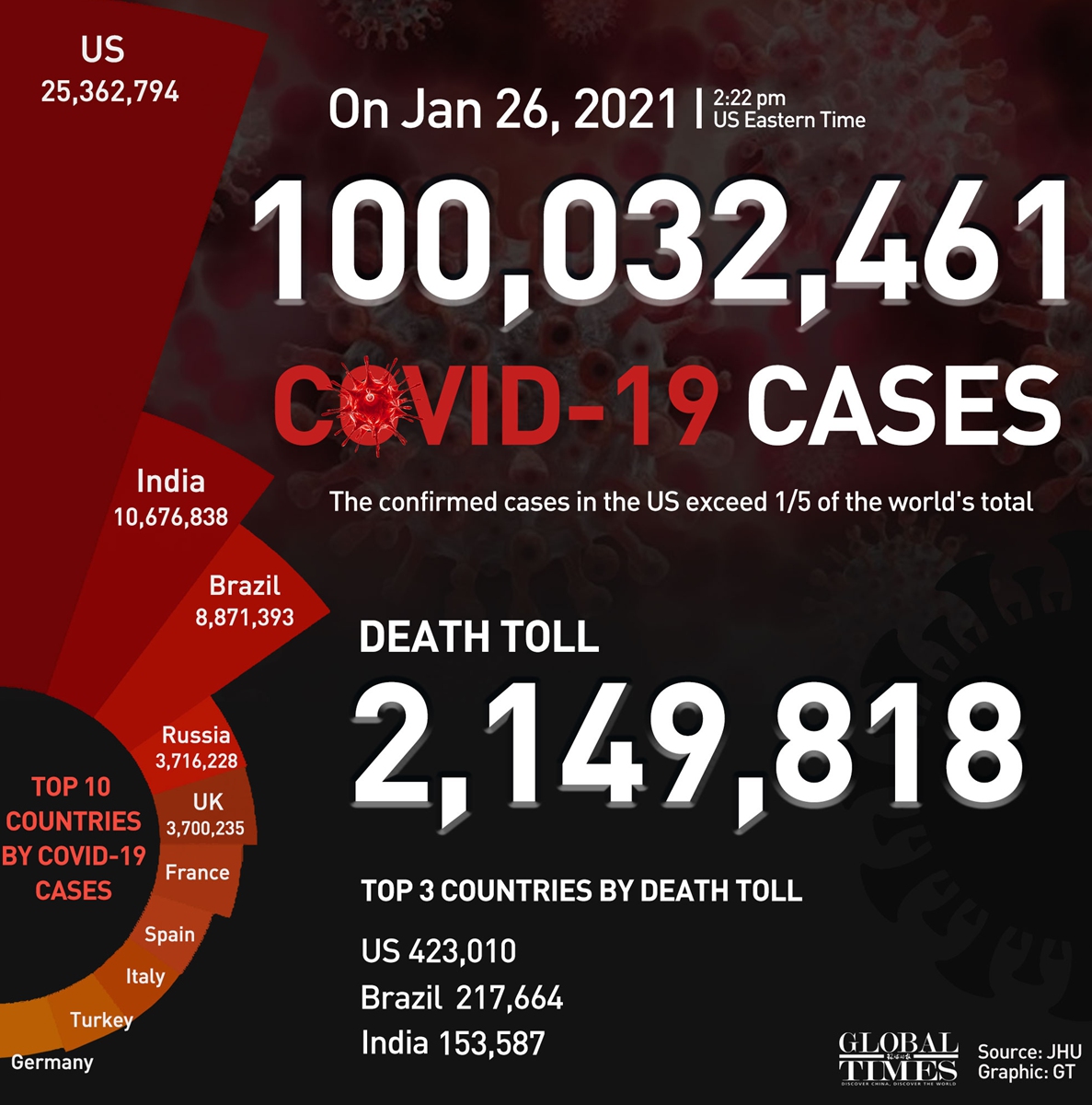 Global COVID-19 cases top 100 million: Johns Hopkins University. Graphic: GT