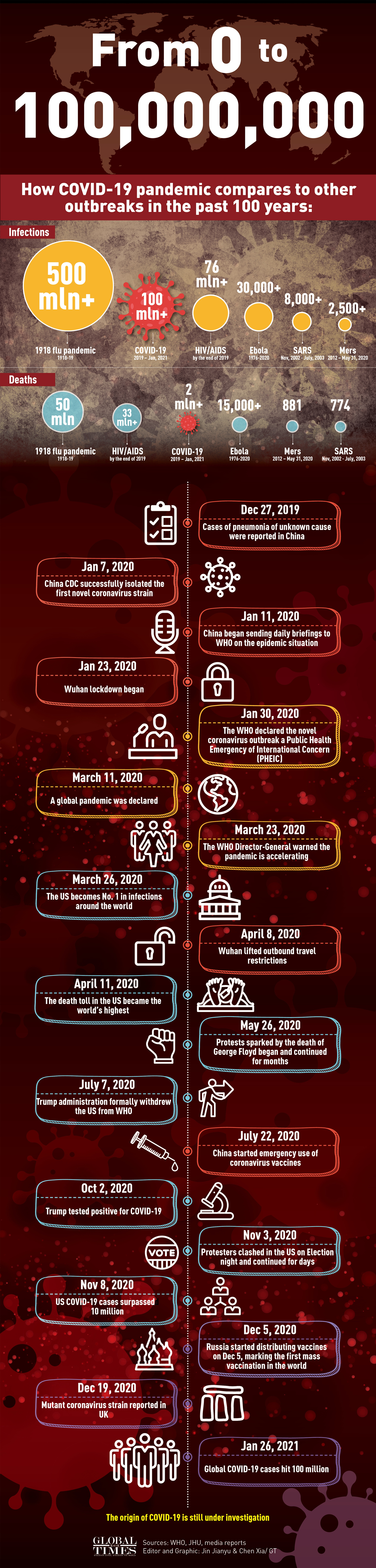 From 0 to 100,000,000, how COVID-19 pandemic compares to other outbreaks in the past 100 years. Graphic: GT