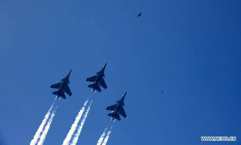 Fighter planes are seen at the 72nd Republic Day parade in New Delhi, India on Jan. 26, 2021. (Photo by Partha Sarkar/Xinhua)