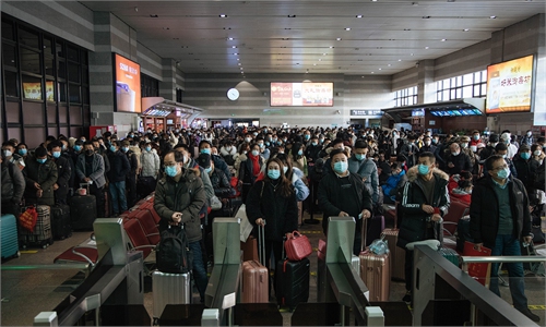 There are also people who still stick to the tradition and travel back to hometown. "I had to go back because Spring Festival is the only time I can get a long break. I tried to avoid causing trouble for others and I made sure I was well-protected on my way home," Feng Nifeng, an employee working at a Beijing's massage parlor, told the Global Times. Feng decided not to wait for the rush, and headed back to Northwest China's Shaanxi Province in mid-January.