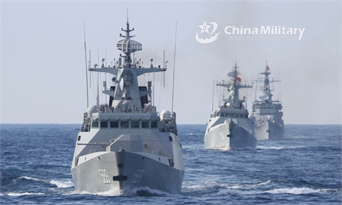 The guided-missile frigate Zhoushan (Hull 529), together with the guided-missile destroyers Taizhou (Hull 138) and Hangzhou (Hull 136), steam to designated sea area in East China Sea during a maritime realistic training exercise in early January, 2021. They are attached to a destroyer flotilla with the navy under the PLA Eastern Theater Command.Photo:China Military