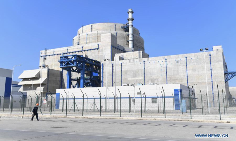 Photo taken on Jan. 30, 2021 shows the No. 5 nuclear power unit in the city of Fuqing, southeast China's Fujian Province. China's first nuclear power unit using Hualong One, a domestically-designed third-generation nuclear reactor, has entered commercial operation, said the China National Nuclear Corporation (CNNC) Saturday. The No. 5 unit in Fuqing is generating electricity for sale after a seven-day trial run. (Xinhua/Lin Shanchuan)