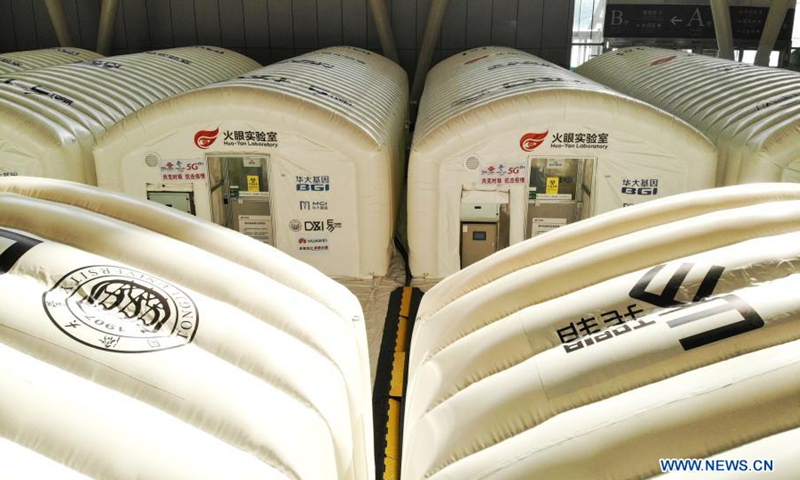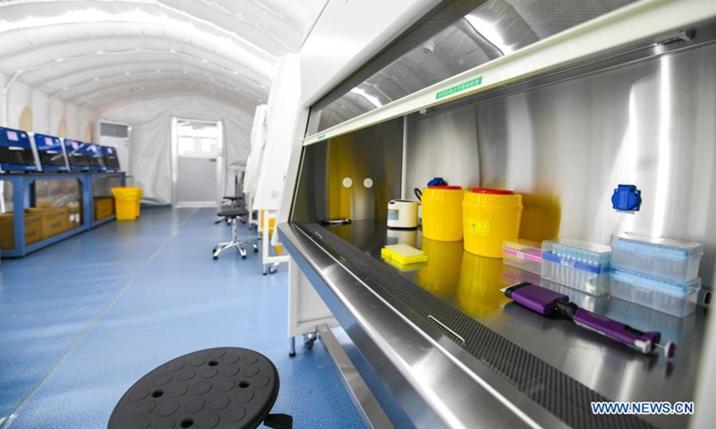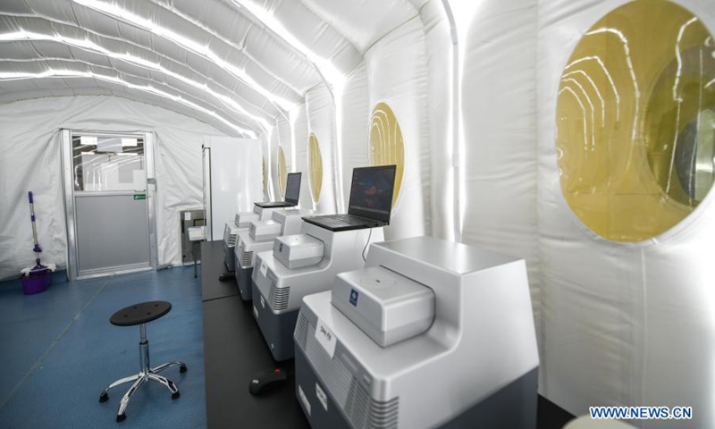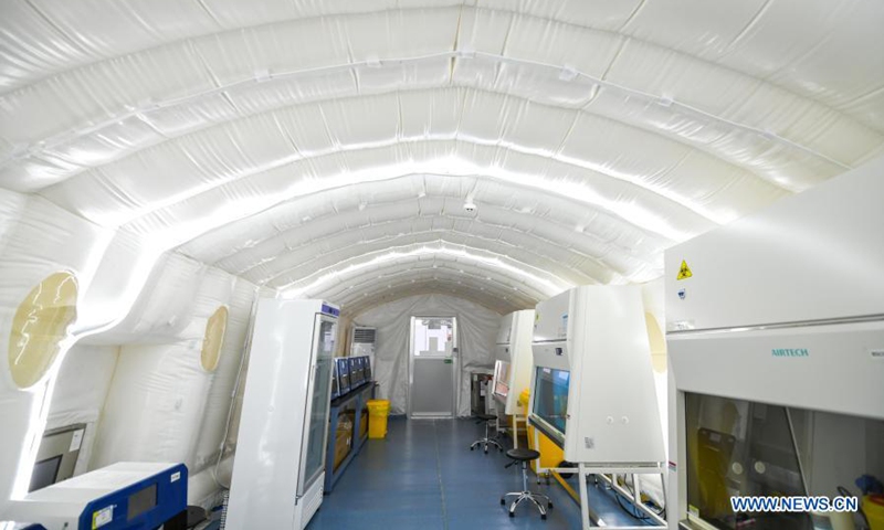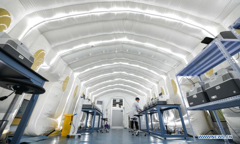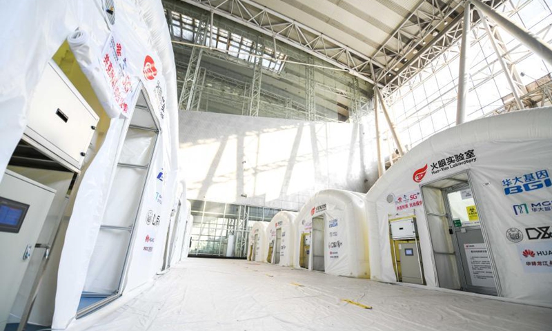 Photo shows the "Huoyan" nucleic acid test laboratory in Harbin, northeast China's Heilongjiang Province, Jan. 30, 2021. The "Huoyan" laboratory will soon be put into use to fight the COVID-19 pandemic in Harbin. (Xinhua/Wang Song)