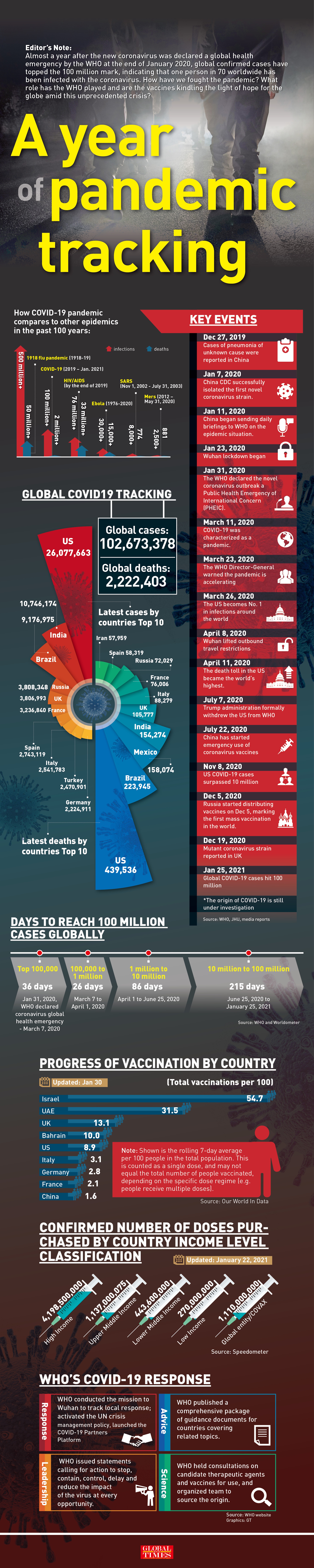 Editor's Note: Almost a year after the new coronavirus was declared a global health emergency by the WHO at the end of January 2020, global confirmed cases have topped the 100 million mark, indicating that one person in 70 worldwide has been infected with the coronavirus. How have we fought the pandemic? What role has the WHO played and are the vaccines kindling the light of hope for the globe amid this unprecedented crisis?