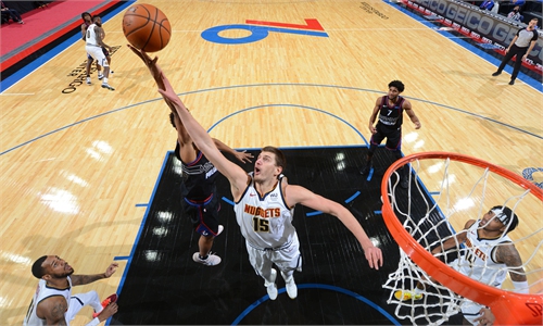 Nikola Jokic (No.15) of the Denver Nuggets drives to the basket during the game against the Utah Jazz on Sunday in Denver, Colorado. Photo: AFP