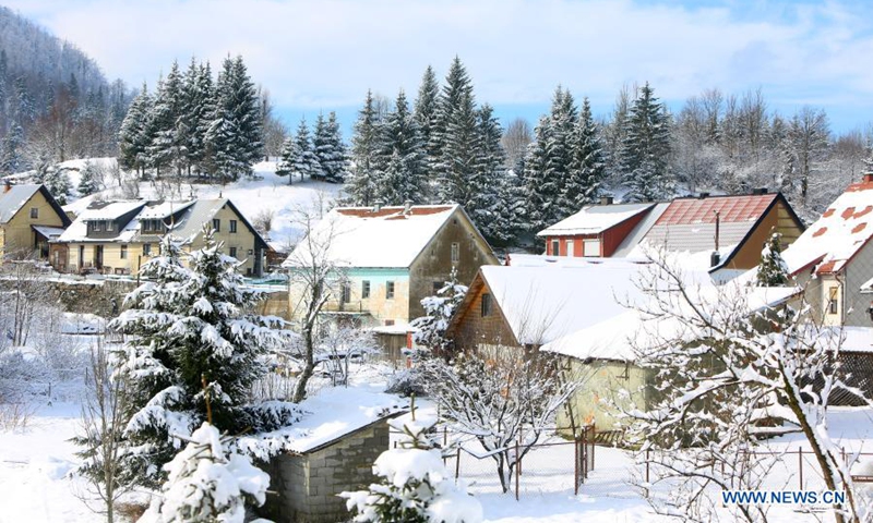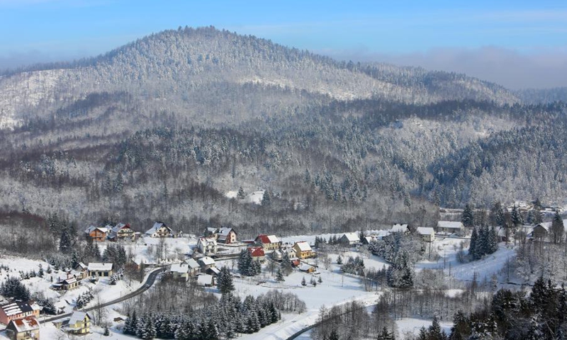 Photo taken on Feb. 1, 2021 shows the winter scenery of Lokve, western Croatia's mountainous Gorski Kotar region. (Kristina Stedul Fabac/Pixsell via Xinhua)