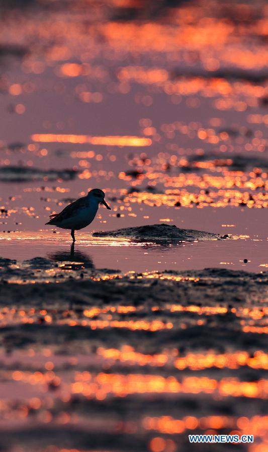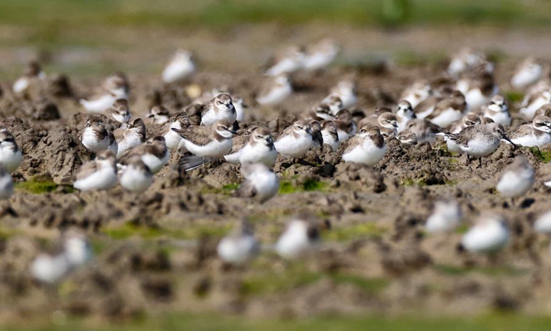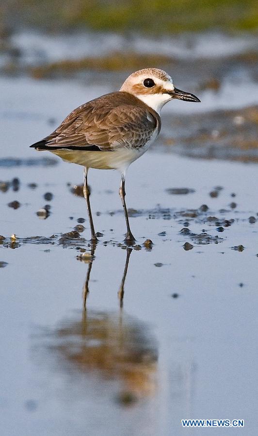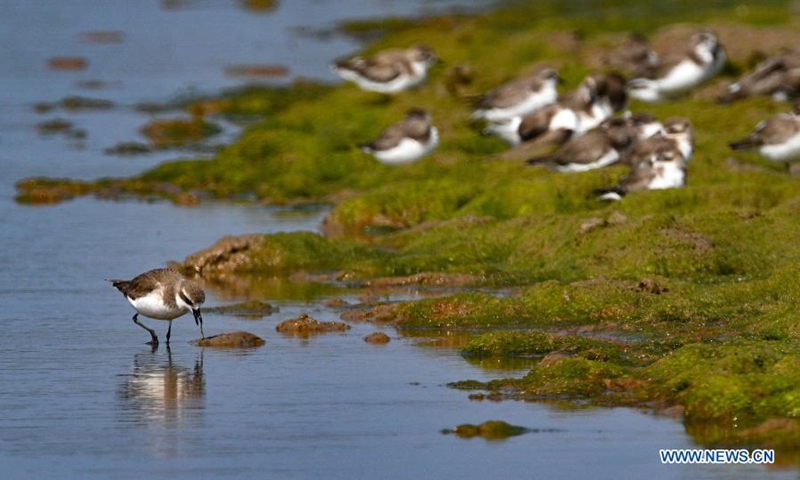 A lesser sand plover forages at Xinyingwan mangrove nature reserve in Danzhou, south China's Hainan Province, Jan. 19, 2021.(Xinhua/Yang Guanyu)