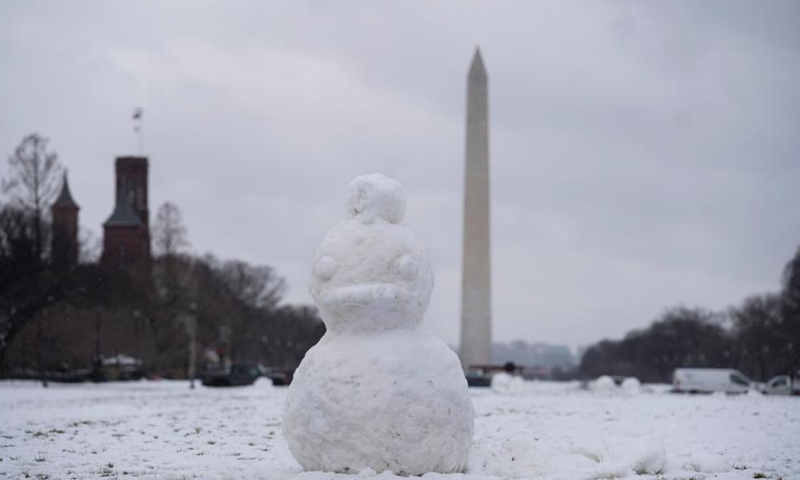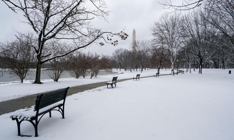 Photo taken on Feb. 2, 2021 shows the snowy scenery at the National Mall in Washington D.C., the United States. (Xinhua/Liu Jie)