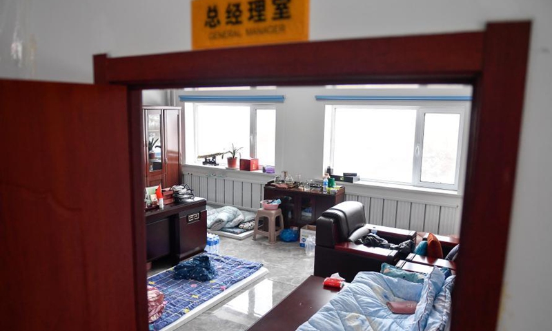 Zhao Hongxia's office is seen converted into a temporary dormitory in Jiahe Catering Company in Tonghua City of northeast China's Jilin Province, Jan. 21, 2021.(Xinhua/Xu Chang)
