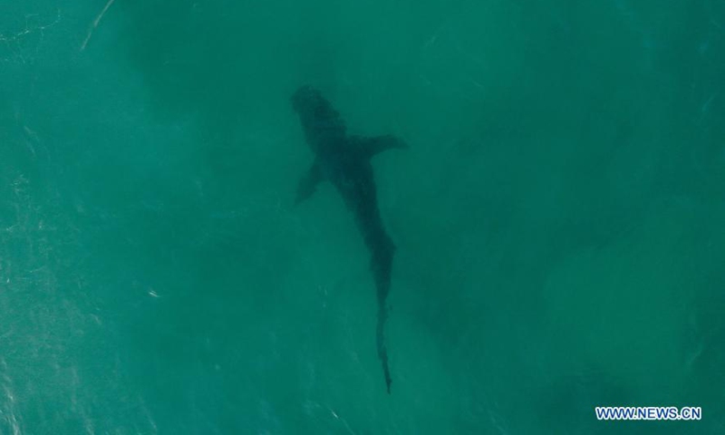 Aerial photo taken on Feb. 3, 2021 shows a shark in the Mediterranean Sea off the coast of the northern Israeli city of Hadera. (Photo by Gil Cohen Magen/Xinhua)
