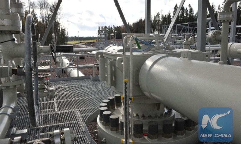 File photo taken on Oct. 8, 2012 shows Nord Stream pipeline equipments before the opening ceremony of the North Stream second gas link in Portovaya bay, some 60 kilometers from the town of Vyborg in northwestern Russia. (Xinhua)