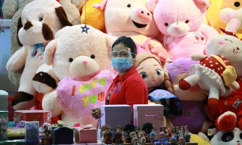 A saleswoman tends to a shop of stuffed toys at a supermarket in Nay Pyi Taw, Myanmar, Feb. 5, 2021.Photo:Xinhua