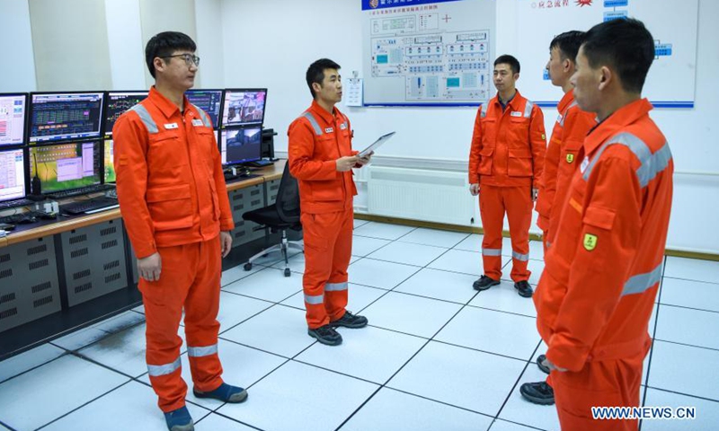 Maintenance workers change shift at the Horgos initial compressor station of the West Pipeline Company under China Oil & Gas Pipeline Network Corporation (PipeChina) in Horgos, northwest China's Xinjiang Uygur Autonomous Region, Feb. 4. (Xinhua/Ding Lei)