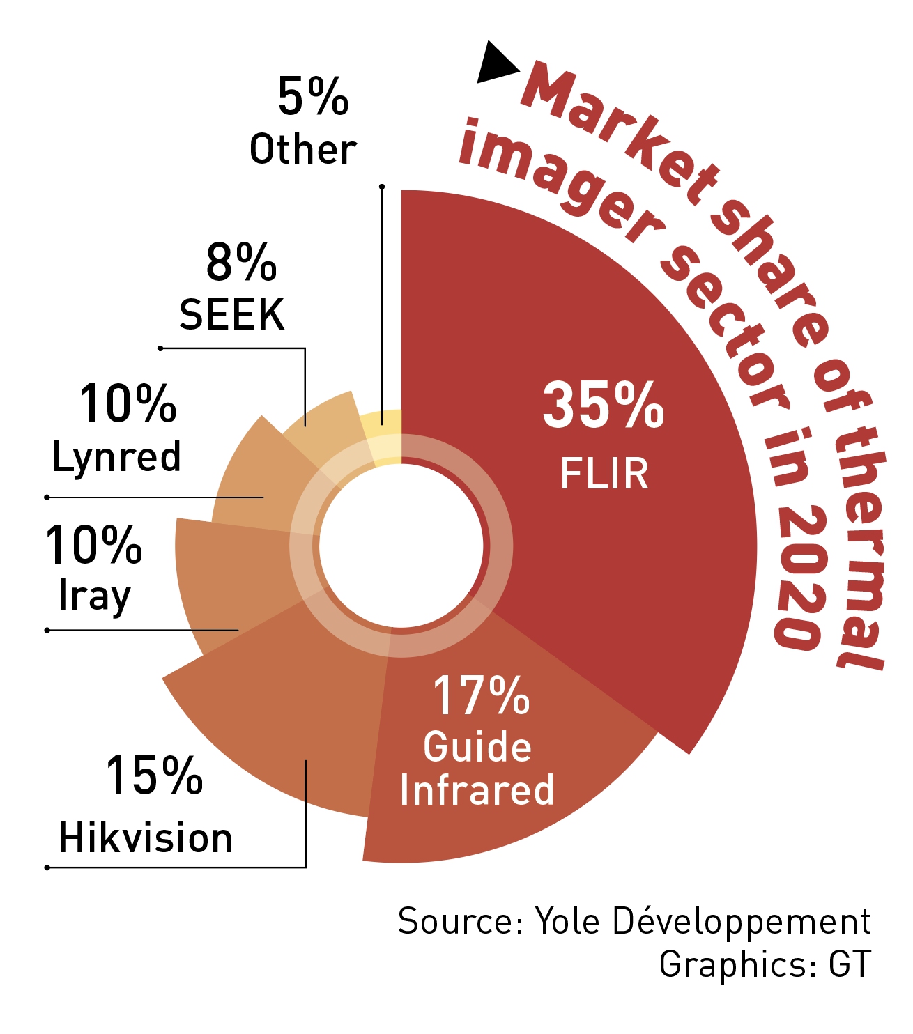 Data by international market research company Yole Développement shows that four out of the top ten infrared thermal imaging companies are now Chinese, covering 44 percent of global market share in 2020, an increase of 29 percent year-on-year.