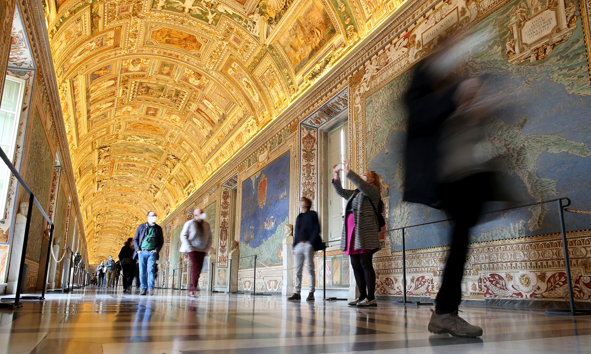 Visitors walk in the 'Gallery of the Maps' at Vatican Museums on February 04, 2021 in Vatican City, Vatican. Photo: VCG