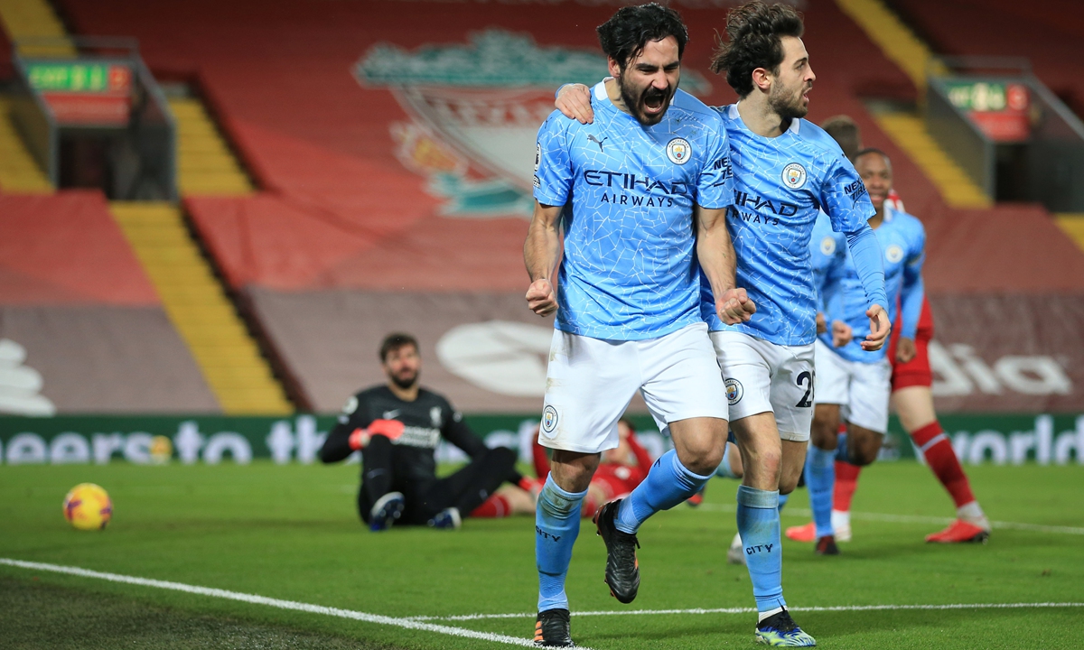 Inspired by Gundogan's goals and Phil Foden's stylish display, City moved 10 points clear of fourth-placed Liverpool after their first win at Anfield since 2003.