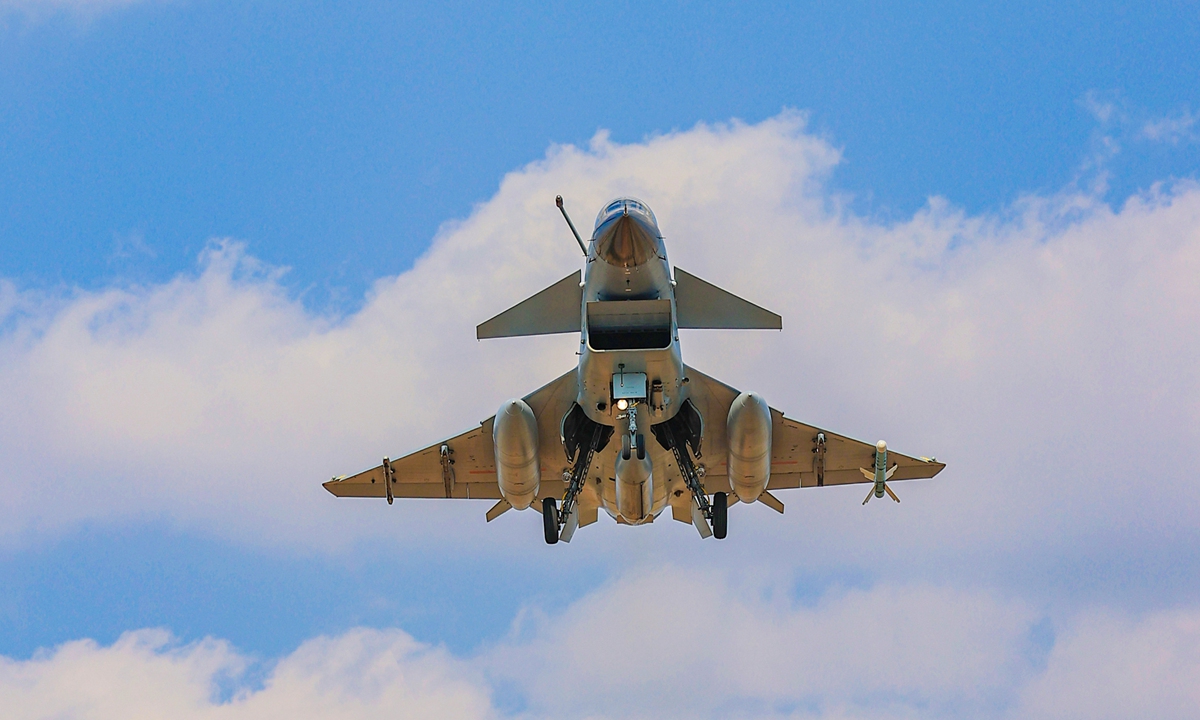 A J-10 fighter jet attached to an aviation brigade of the air force under the PLA Southern Theater Command takes off from the runway during a day-into-night flight training exercise on February 2, 2021. The exercise is focused on training items like tactical formation flight, simulated aerial combat, etc.Photo:China Military