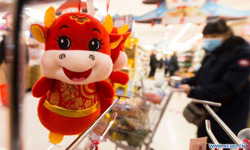 Decorations for the upcoming Chinese Lunar New Year are seen at a Chinese supermarket in Toronto, Canada, on Feb. 8, 2021. The Chinese Lunar New Year falls on Feb. 12 this year.Photo:Xinhua