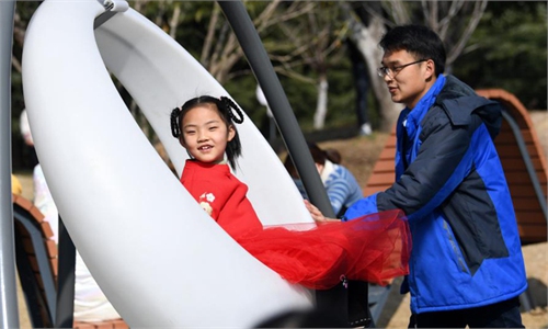 People enjoy their leisure time at Feicui Lake park in Hefei, east China's Anhui Province, Feb. 13, 2021, the second day of the Chinese Lunar New Year. (Xinhua/Liu Junxi)