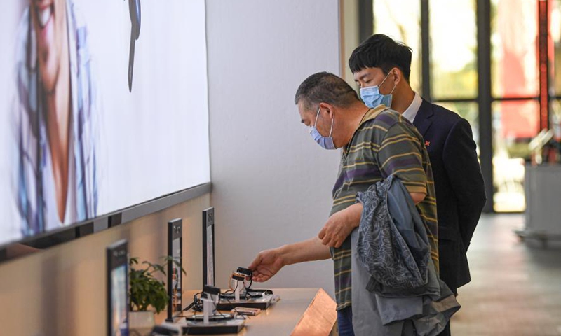 A consumer looks at a wearable device during the Lunar New Year holiday at a duty-free shopping mall in Haikou, south China's Hainan Province, Feb. 14, 2021. (Xinhua/Pu Xiaoxu)