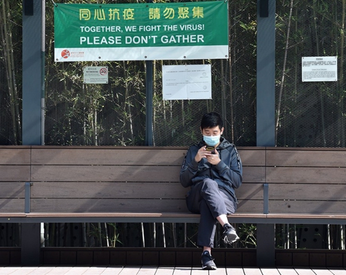 A man wearing a face mask rests at a park in Hong Kong, south China, Feb. 16, 2021. (Xinhua/Lo Ping Fai)