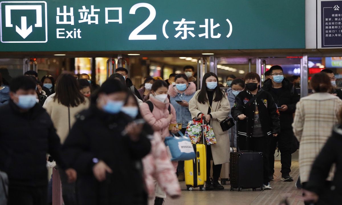 Passengers arrive at the Beijing West Railway Station on Thursday, as Spring Festival holidays came to an end. Photo: VCG