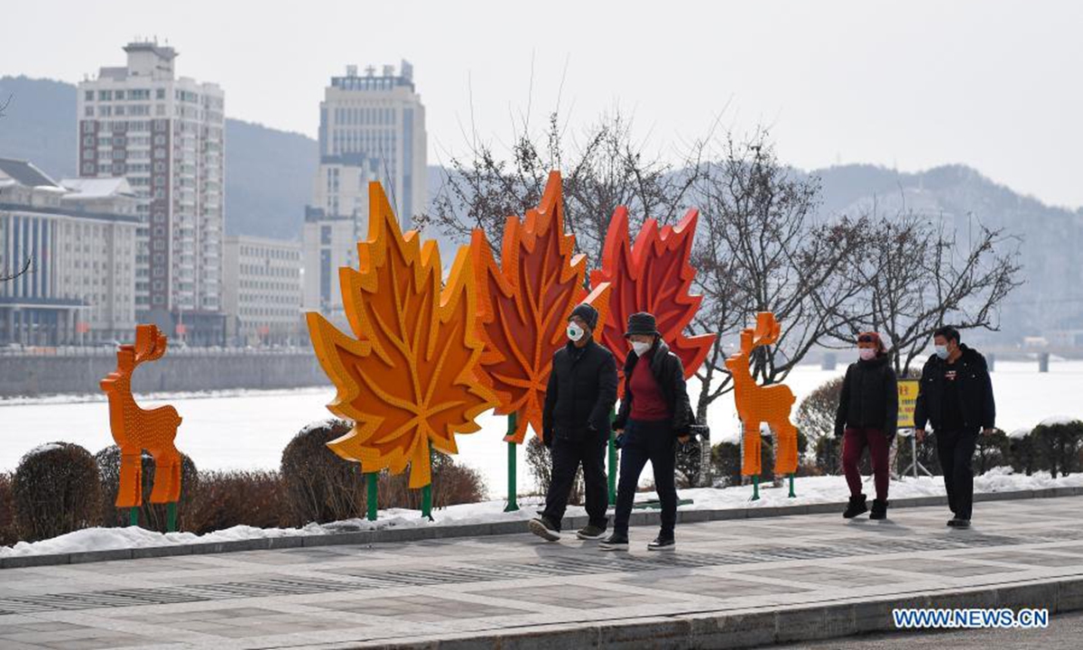 Residents walk on the street in Dongchang District of Tonghua, northeast China's Jilin Province, Feb. 21, 2021. Tonghua City, northeast China's Jilin Province, announced Sunday its district of Dongchang had been downgraded to a low COVID-19 infection risk area. Currently, the province has cleared all areas with medium infection risks. (Xinhua/Xu Chang)