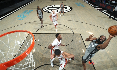 James Harden (No.13) of the Brooklyn Nets shoots against the Los Angeles Clippers on Sunday in Los Angeles, California. Photo: VCG
