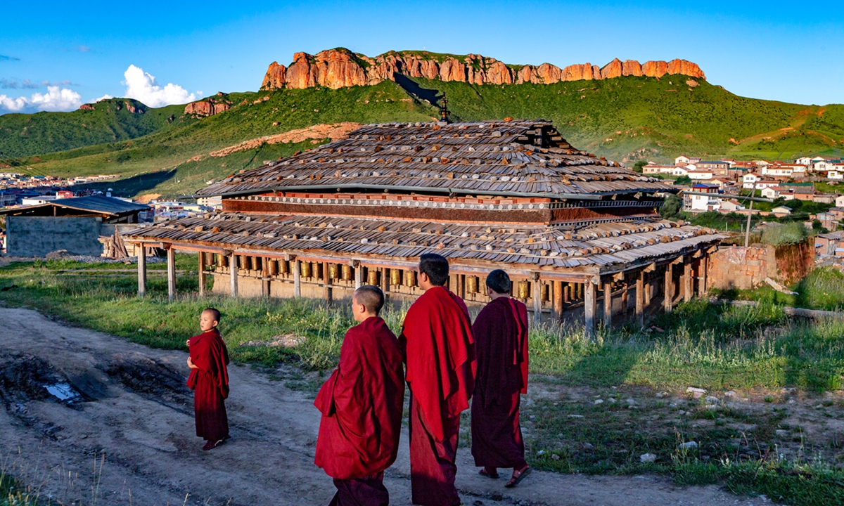 Monks walk near a temple in the Gannan Autonomous Prefecture, Northwest China's Gansu Province. Photo: IC