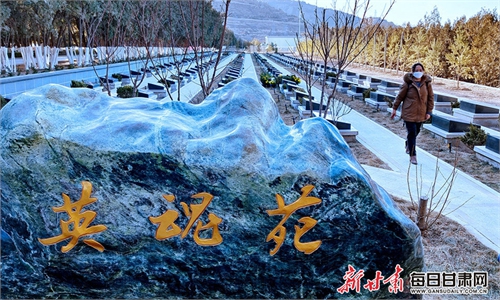 Employees of the martyrs' cemetery in Luohe, Central China's Henan Province, on Sunday organize bouquets that local residents brought in honor of Wang Zhuoran, 24, who died in the Galwan Valley skirmish with India in June 2020. Photo: VCG