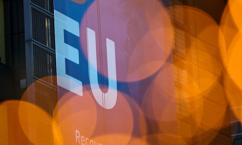 The headquarters building of the European Commission is seen through Christmas decorations at Schuman Square in Brussels, Belgium, Dec. 8, 2020.(Photo: Xinhua)