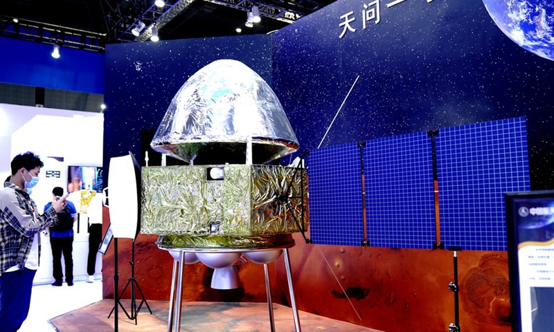 Photo taken on Sept. 15, 2020 shows the model of the Mars probe Tianwen-1 at the 22nd China International Industry Fair (CIIF) in east China's Shanghai.(Photo: Xinhua)