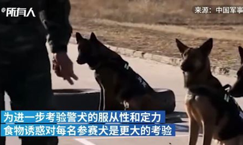 The trainers of a detachment of Chinese First Mobile Force of the Armed Police recently organized a police dog assessment to test the obedience and anti-disturbance abilities of police dogs. In the test, a 4-year-old Malinois Heilong (which means black dragon), completed the task brilliantly, facing a ham sausage placed in front of him with calm and poise.