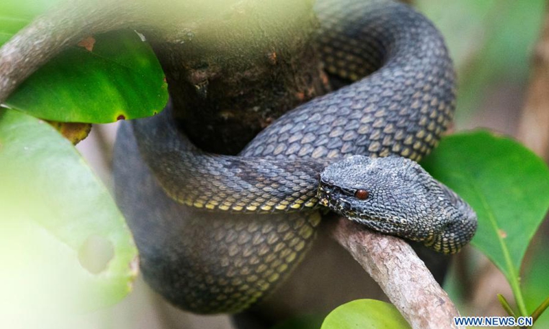 A mangrove pit viper is seen in a mangrove forest at Singapore's Pasir Ris Park on Feb. 24, 2021.(Photo: Xinhua)