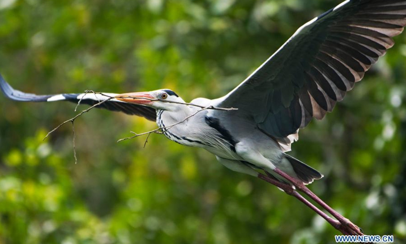 A grey heron is seen in a mangrove forest at Singapore's Pasir Ris Park on Feb. 24, 2021.(Photo: Xinhua)