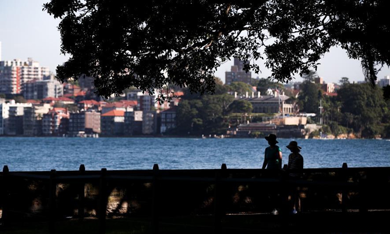 Two women walk in a park in Sydney, Australia, on Feb. 26, 2021. Restrictions in the Australian state of New South Wales (NSW) will further ease from Friday as vaccination rolled out and "no local case" status continued. (Xinhua/Bai Xuefei)