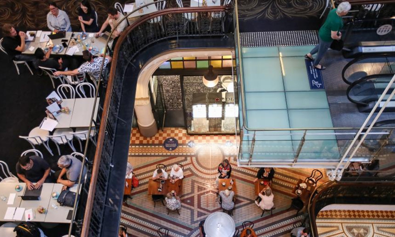 People rest in a cafe in Sydney, Australia, on Feb. 26, 2021. Restrictions in the Australian state of New South Wales (NSW) will further ease from Friday as vaccination rolled out and "no local case" status continued. (Xinhua/Bai Xuefei)