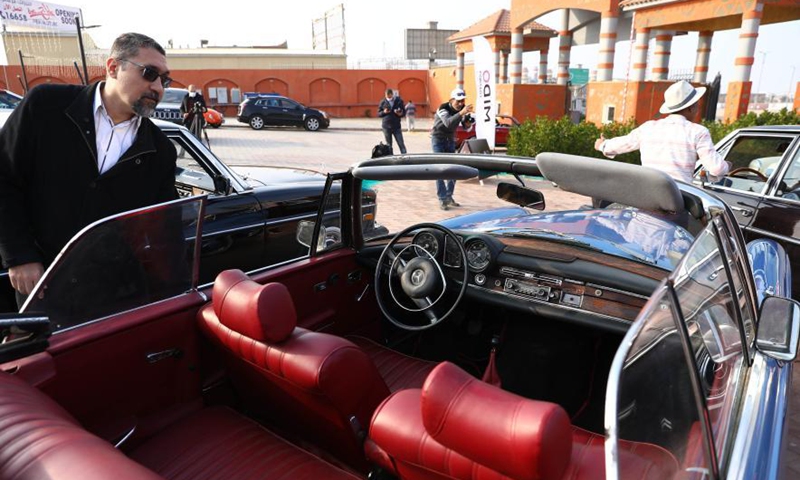 A visitor looks at a car during the Classic Mercedes-Benz Cars Show in Cairo, Egypt, on Feb. 26, 2021. (Xinhua/Ahmed Gomaa)