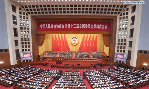 The 13th Chinese People's Political Consultative Conference (CPPCC) National Committee kicks off its annual meeting on Sunday at the Great Hall of the People in Beijing, marking the start of this year's two sessions - the annual meetings of the CPPCC and the National People's Congress, China's top legislature - the most important annual political event in China. Photo: VCG