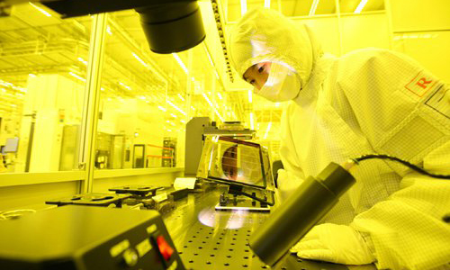 An employee works at the production line of Samsung China Semiconductor in Xi'an, capital of Northwest China's Shaanxi Province. Photo: Courtesy of Samsung