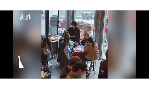 Under the shed, two mahjong tables were laid out, with groups of four people playing mahjong while laughing and chatting in the rape flower field in Southwest China's Sichuan Province. photo: screenshot of Pear Video on Sina Weibo.