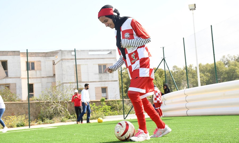 A member of Morocco's first blind women football team trains in Rabat, Morocco, on April 3, 2021.(Photo: Xinhua)