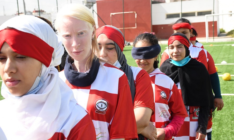 Members of Morocco's first blind women football team train in Rabat, Morocco, on April 3, 2021.(Photo: Xinhua)