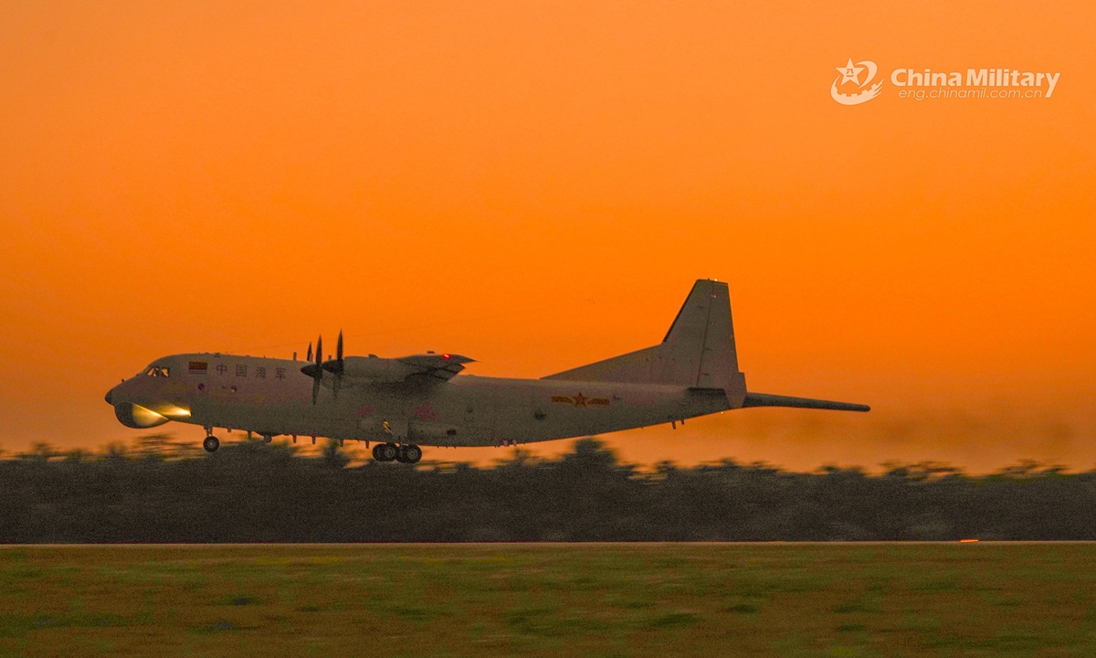 An anti-submarine patrol aircraft attached to an aviation regiment with the navy under the PLA Southern Theater Command takes off for a round-the-clock training exercise on March 10, 2021. The exercise involved multiple over-water flight training items including anti-submarine operations and low-altitude flight. Photo: China Military Online