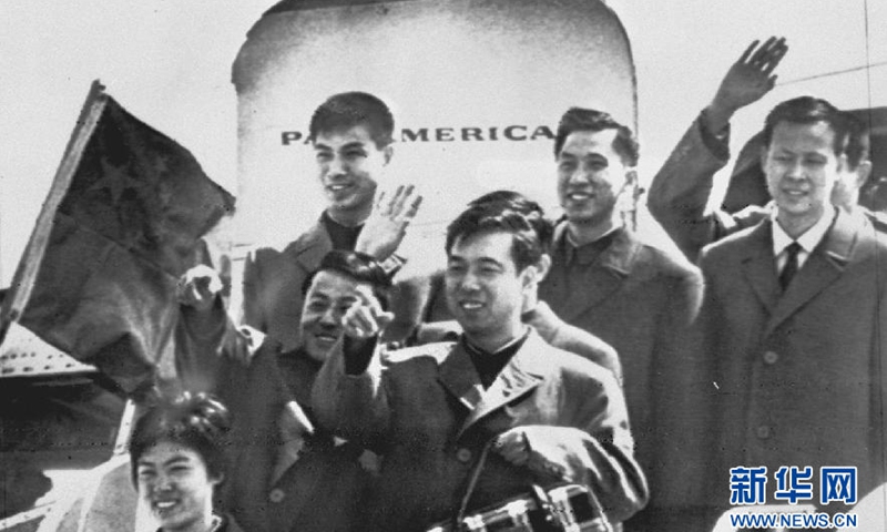 Chinese table tennis players pay a return visit to the United States at the invitation of the American Table Tennis Association in April 1972. File photo shows Chinese table tennis players arriving in Detroit, Michigan on April 13, 1972. File photo: Xinhua