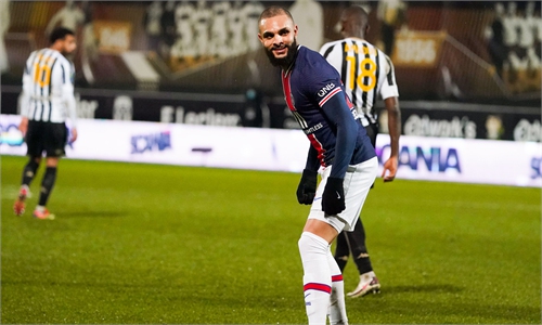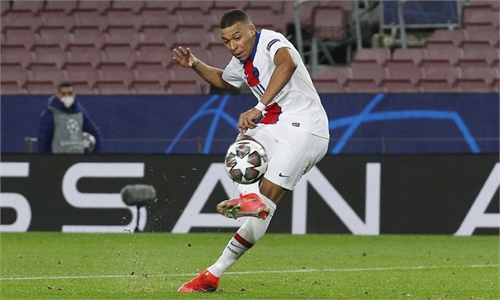 PSG's Neymar (left) and Bayern Munich's Lucas Hernandez compete for the ball on Tuesday in Paris, France. Photo: VCG